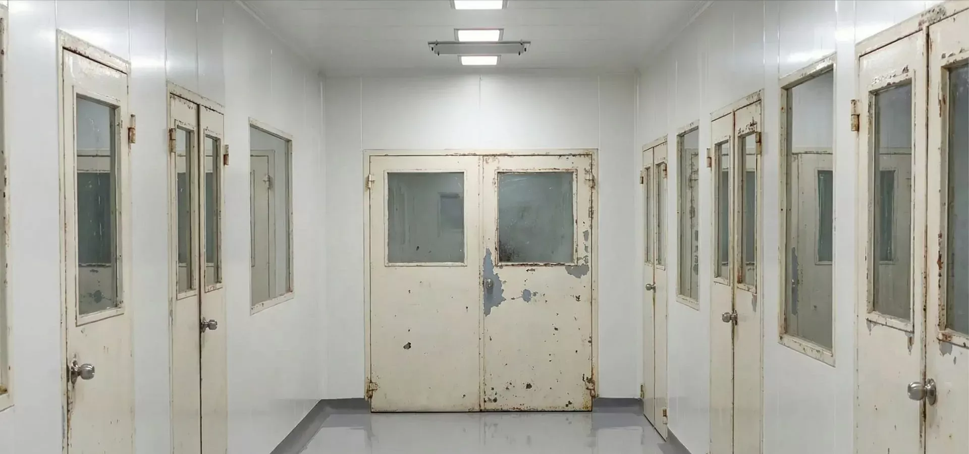 Wall and ceiling panels, doors, windows, and pass-through chambers designed for ISO-compliant cleanroom environments.